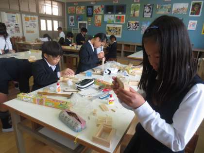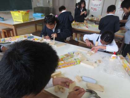 金づちやのこぎりの使い方にも慣れてきているようで、自分の考え通りに加工していました。