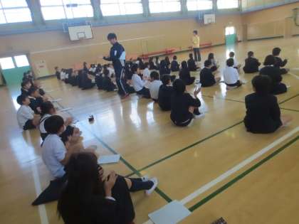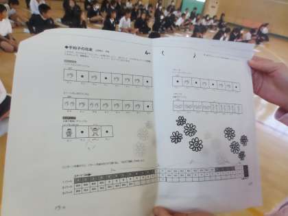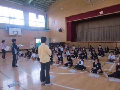 ボディーパーカッションの練習をしています。子どもたちは真剣に練習をしていました。