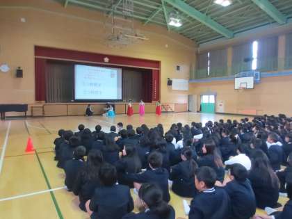 民族クラブの児童から、韓国・朝鮮の文化についてのクイズをしました。生活で使う物や言葉にも日本と同じものが多くあり、深くつながっていることをクイズで学びました。民族クラブのみなさん、準備が大変だったと思います。素晴らしい発表をありがとうございました。