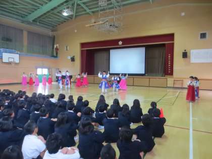 代表の児童が「剣舞」についての説明と、今日の発表の意気込みを伝えてくれました。