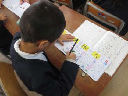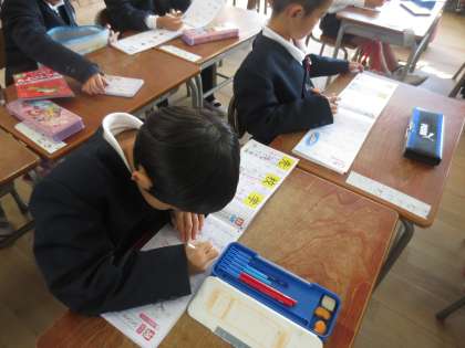 子どもたちは、鉛筆に力をこめ、ていねいに書いていました。