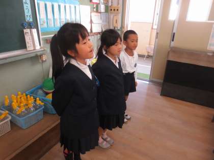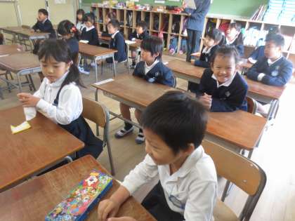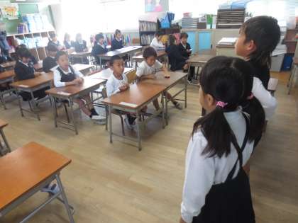 教室での練習です。しっかりと覚えていました。子どもたちは楽しく、真剣に練習をしていました。