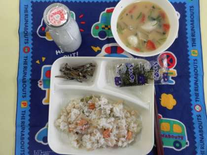 ちらしずし、ぞう煮、ごまめ、牛乳