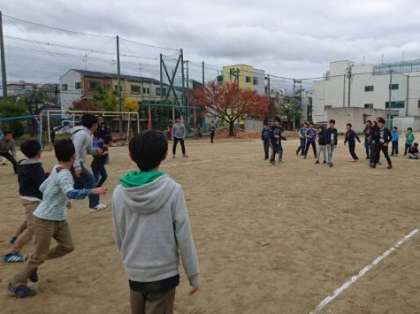 最後の競技は、「大人vs6年生のドッジボール大会」でした。大人も子どもたちも真剣勝負で対決しました。ワーッと歓声が何度も上がり、大変盛り上がりました。