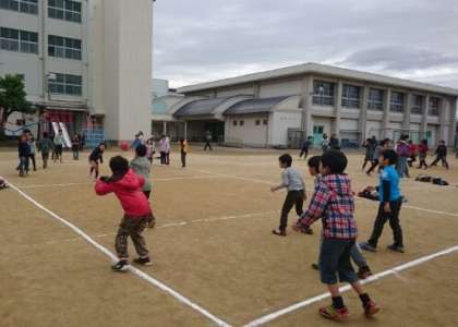 各競技が終わり、「学年別ドッジボール」を各コートに分かれて実施しました。ドッジボールを楽しみにしていた子どもたちも多かったようです。各学年、本当に仲良く楽しく競技をしていました。