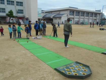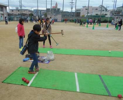 「スカットボール」のコーナーでは、ボールをうまく当てて、穴の中に何球入れることができたかな?