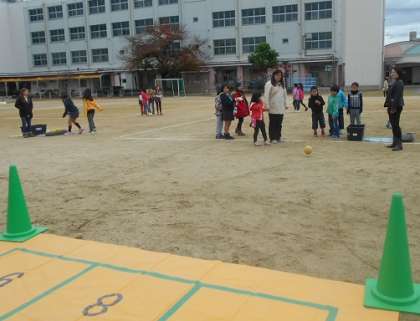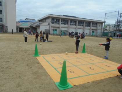 「スリーアイズ」のコーナーでは、ボールをうまく転がしたり、大きくバウンドさせたりして、枠の中に入れて、縦、横、斜めに並べることができたかな?