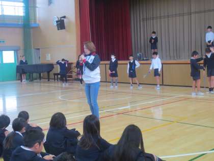 全校朝会で桂先生より、健康には、手洗い・うがいがとても大切です。そして、ハンカチ・ティッシュをいつも持っていることが、健康アップにつながっていくとのお話がありました。また、健康アップには、座ったとき、立ったときなどの姿勢についても、大切であることをお話しされました。
