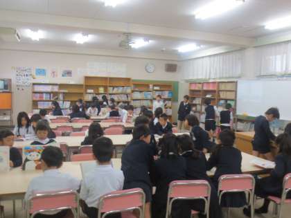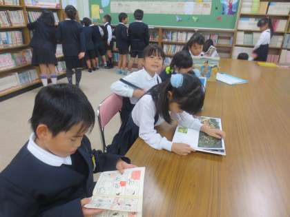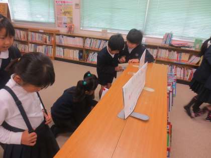 木曜日の図書館ボランティアの方々に開放していただいています。運動場が使えないので、いつもより多くの児童が図書館に来て本を読んでいます。
