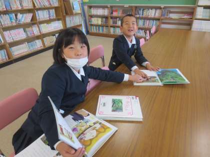 金曜日の図書館ボランティアの方に開放していただいています。子どもたちは、のんびりと読みたい本をさがしています。