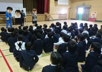 低学年の防犯教室では、みんなで犯人の似顔絵を作りました。高学年の防犯教室では、みんなは犯人の服装や持ち物についてもきちんと覚えていました。
