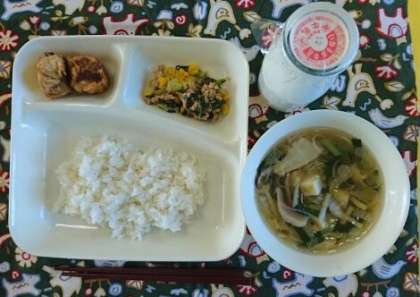 あげシューマイ、えびととうふのスープ、ツナとチンゲンサイのいためもの