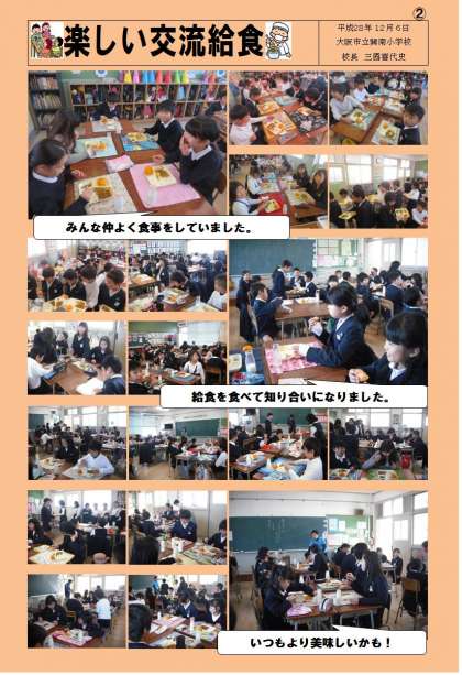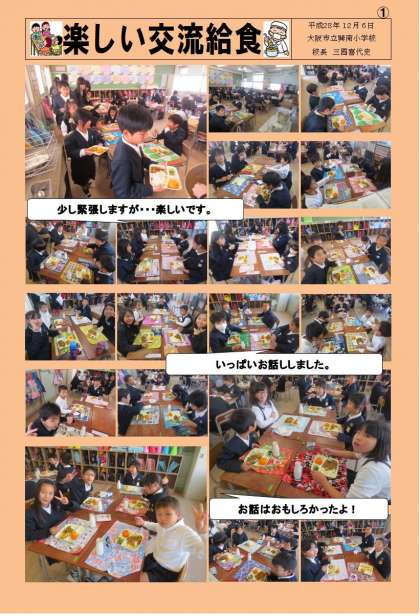 12/6(火)全校で交流給食をしました。他学年との給食は少し緊張していましたが、給食を食べ始めると、会話をしはじめ楽しい雰囲気になっていました。全学級の様子は撮れていませんがご覧ください。