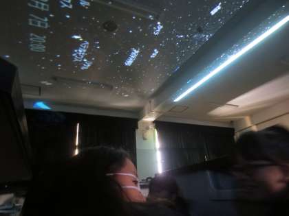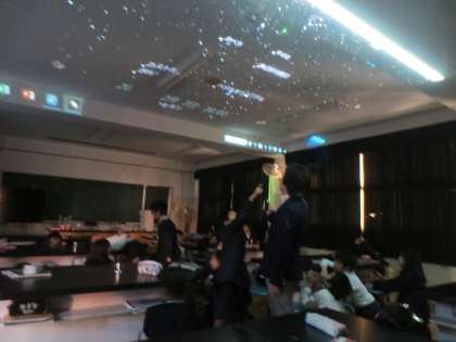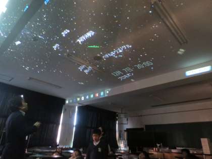 12/7(水)4年生が理科の学習をしています。冬の星座や星の学習に、理科室の天井がプラネタリウムになっていました。子どもたちは驚きの声が上がっていました。