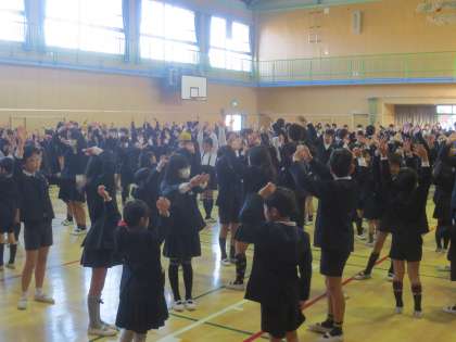 今日の縦割り集会は、「船長さんのめいれいゲーム」です。立ったり座ったり・・・ジャンプしたり、船長さんのめいれいで全員が体を動かしていました。