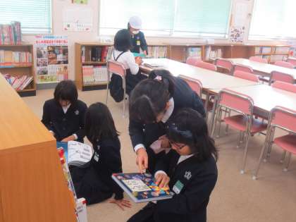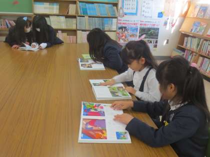 木曜日の図書館ボランティアの方に開放していただいています。子どもたちは、のんびりと読みたい本をさがし、友だちと仲よく本を読んでいます。