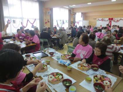 巽南サロンは、巽南まちづくり協議会(食事サービス委員会)が、毎月、敬老の方々を食事にお招きしている取り組みです。いつも巽南小学校の多目的室でおこなっています。