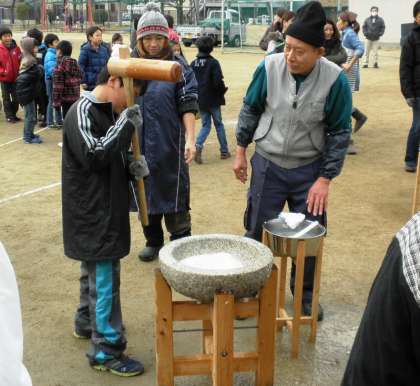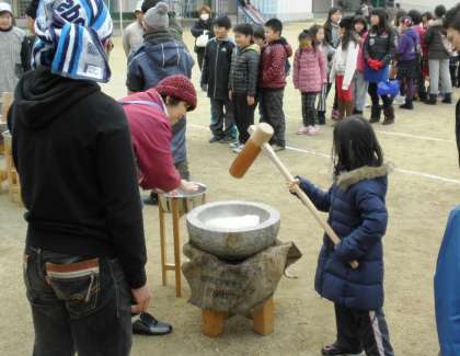 参加した子供たちは大喜びで、「もちつき」を頑張りました。