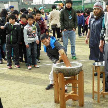 PTA主催の恒例「ふれあいもちつき大会」を開催しました。