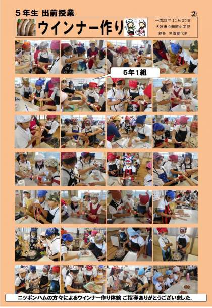 11/25(金)、ニッポンハムの方々によるウインナー作り体験授業をしていただきました。