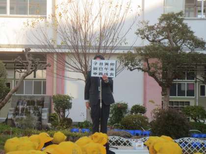校長先生より十二支(ね・うし・とら・う・たつ・み・うま・ひつじ・さる・とり・いぬ・い)は、日本だけではなくいろいろな国でも使われていて、チベットやタイ、ベトナムではウサギに代わりネコが入っているお話がありました。
