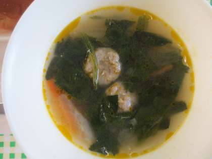 子どもの好きな肉だんごと食物繊維の多い押し麦の入ったスープです。