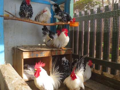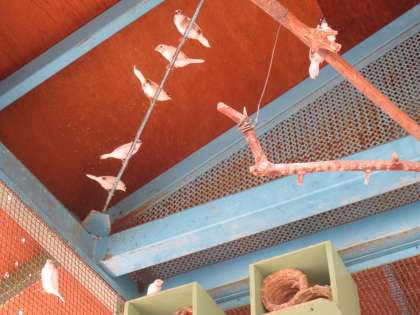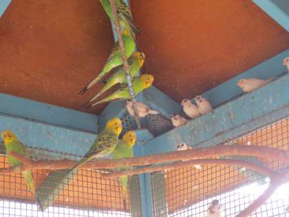 鳥小屋では、チャボ(10羽)、インコ(16羽)、十姉妹(11羽)が暮らしています。全部で37羽が仲よくえさを食べ、元気に飛び回っています。春には子育てがはじまります。飼育栽培委員会の児童たちや地域の方に世話をしていただいています。これからも鳥小屋の仲間は増えていきます。嬉しさ半分・・・心配半分です。