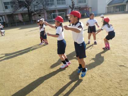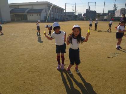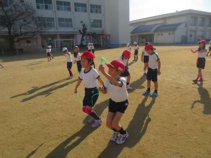 2人で力を合せて繰り返し練習をしていました。続けてとべたときは2人で大喜びです。