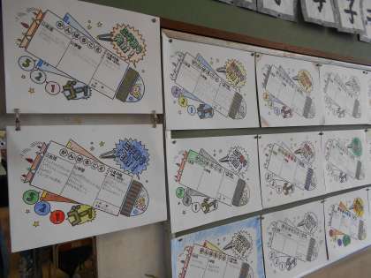 4年生の「3学期がんばることロケット」の発射です。生活、学習、その他についての目標を「ロケット」の用紙にていねいに書かれています。