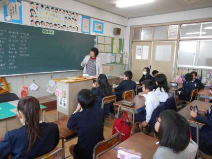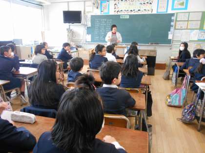 生野区栄養推進事業として、各校を巡回指導している平野先生が、4年生に栄養指導「野菜を食べよう」をしています。