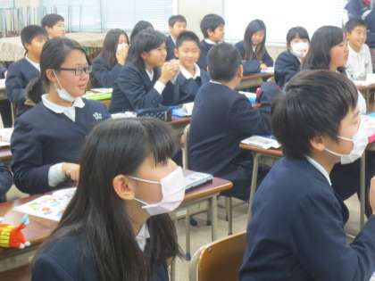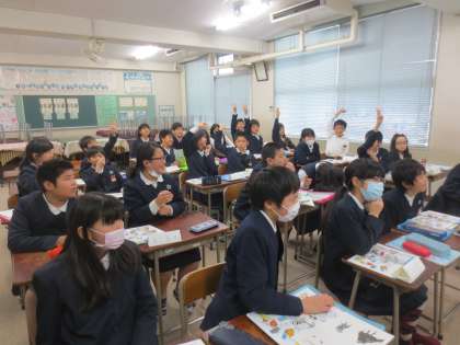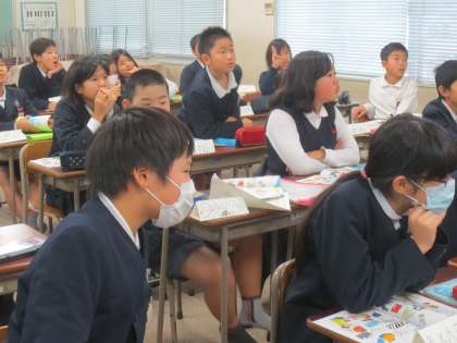 カーン先生の描いた似顔絵も電子黒板に映し出され・・・何でしょうか・・・誰でしょうか・・・と楽しい雰囲気で英語に親しんでいました。
