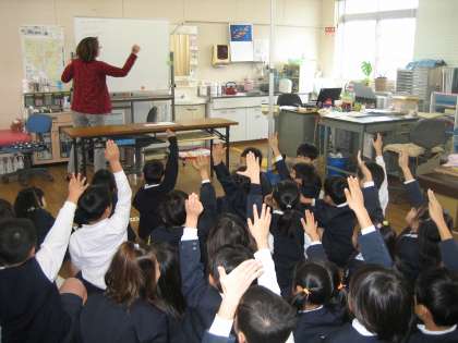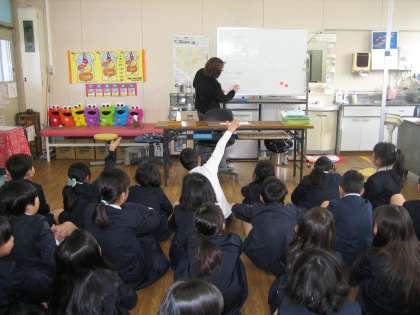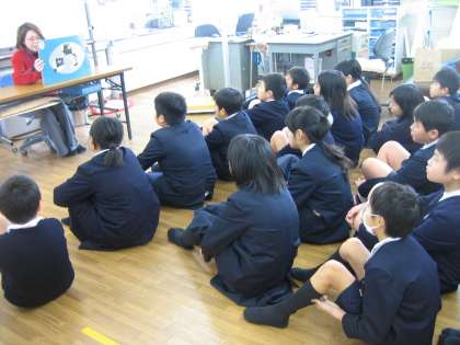 発育測定時に、1〜5年生は、げん子ちゃんの紙芝居を見ました。