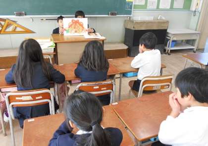 朝の会に図書委員会が、2年生に読み聞かせをしている様子です。