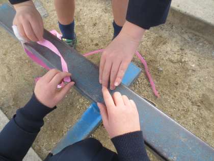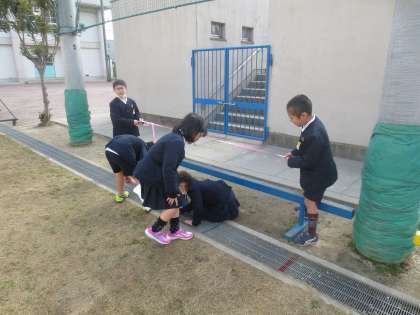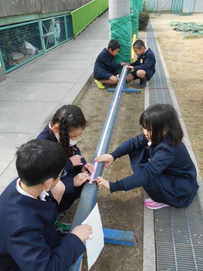 「長さしらべ」をするために次々と場所をかえ、グループで協力し、作業を上手く分担して楽しく活動していました。