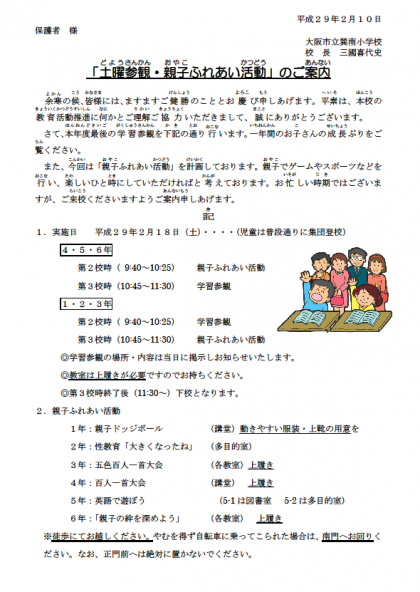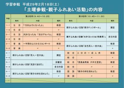 2/10 土曜授業(参観・親子ふれあい活動)のご案内