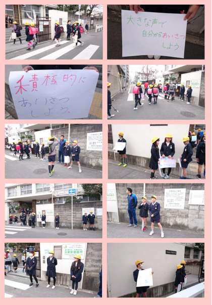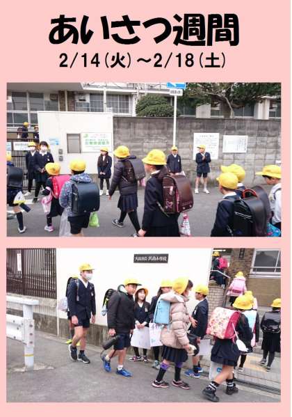 「あいさつ週間」2/14(火)〜2/18(土)です。児童会の子どもたちが、元気な声で登校する友だちに「おはようございます」と声をかけています。