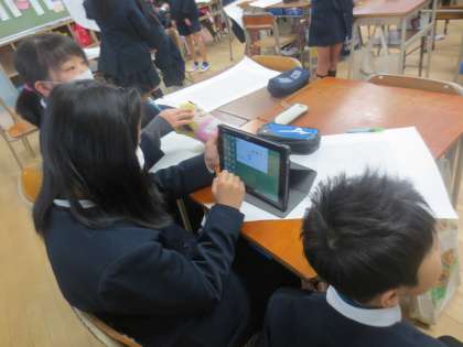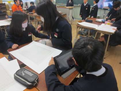 明日、土曜授業で発表する内容を話し合ったり、準備し合ったりしています。