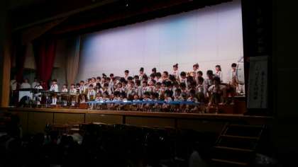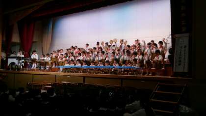 ひまわり組・たんぽぽ組・ちゅうりっぷ組の歌と合奏です。どの子も上手に楽器を演奏していました。