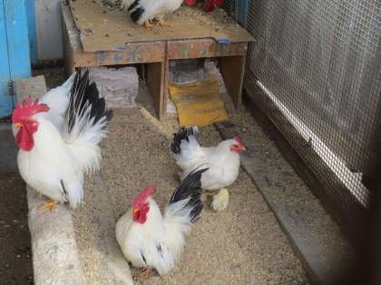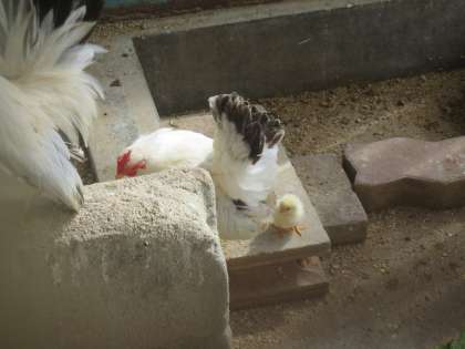 インコ(16羽)や十姉妹(11羽)の仲間たちがいる中で、チャボの赤ちゃんが誕生しました。ヒヨコは元気に鳥小屋で走りまわっています。今は1羽ですが、お母さんチャボは数個のたまごを温めています。楽しみです。