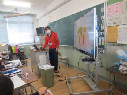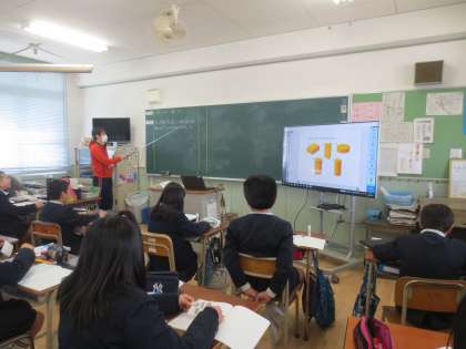 「立体をくわしく調べよう」子どもたちは、デジタル教科書を活用して学習を進めています。