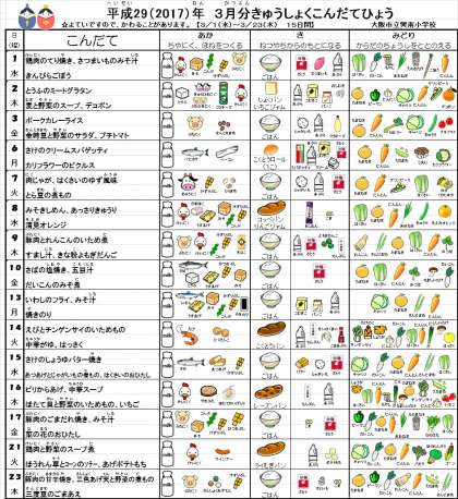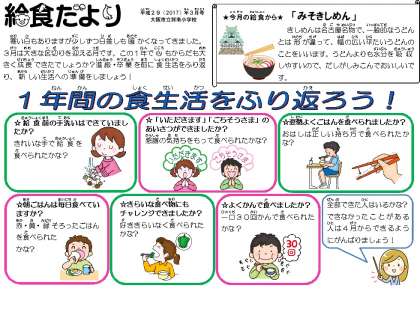 3/1 3月給食献立表・はぐくみ通信3月号・給食だより3月号