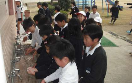 今週は「手洗い・うがい強調週間」です。風邪やインフルエンザの流行る時期。予防の為にも、外での遊びや体育のあとの「手洗い」「うがい」・・・もちろん、給食の前の石鹸をつけての「手洗い」など。