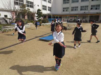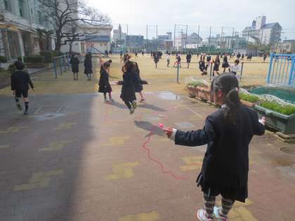 3/2(木)朝の運動場は昨夜の雨でつかえませんでしたが、20分休憩から使用ができるようになりました。