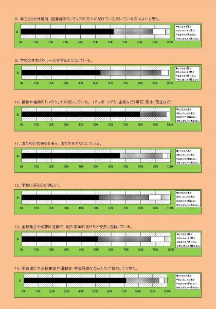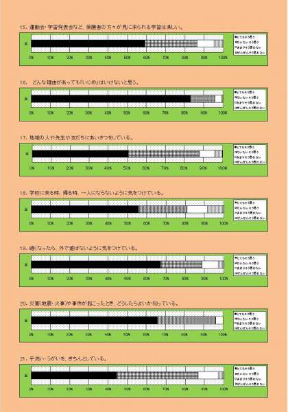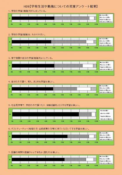 学校教育の自己評価は、児童・保護者・地域の方々のご意見の把握に努め、教職員が話し合いを重ね、今年度の取り組みを検証し、成果と課題と改善策を整理し公表させていただきます。後日、学校協議会の検証・承認を経て、学校ホームページに「学校運営に関する計画・自己評価(最終」」として載せていきます。