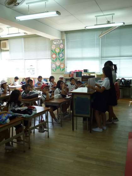 今朝、図書委員会の児童は「紙芝居の読み聞かせ」を1・2年生の教室で行いました。 みんなに聞いてもらおうと一生懸命読む委員会の子ども達。1・2年の子ども達は、絵を真剣に見ながら、聞き入っていました。