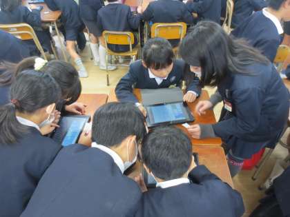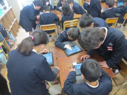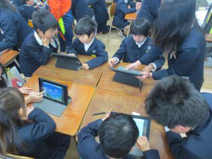 5年生は、わかりやすく丁寧にタブレットPCの使い方を、2年生に教えていました。まずはログインの仕方から・・・5年生は一つ一つやさしく教えていました。