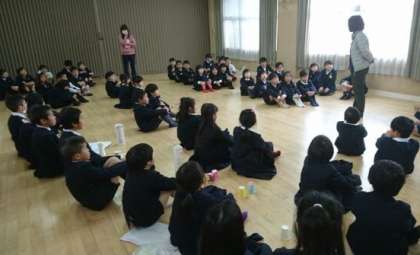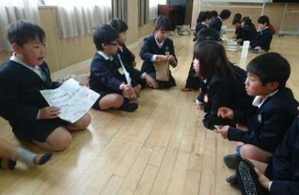 今日は、2年1組の子どもたちが、1年1組の子どもたちに「おもちゃ教室を」開きました。