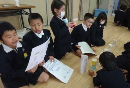 2年生の国語「おもちゃ教室をひらこう」の学習をしました。「おもちゃ教室」をひらいて、手づくりおもちゃの作り方や遊び方を、1年生に分るように教える学習をしました。