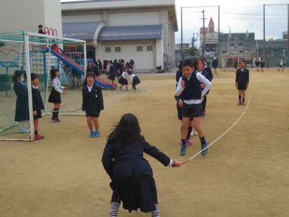 みんなで声を合せ「せーので!」・・・みんな気持ちを一つに大なわ跳びの回数をふやしていました。