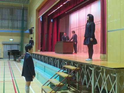 卒業生一人一人が舞台上で、家族の方々へのメッセージを伝えます。